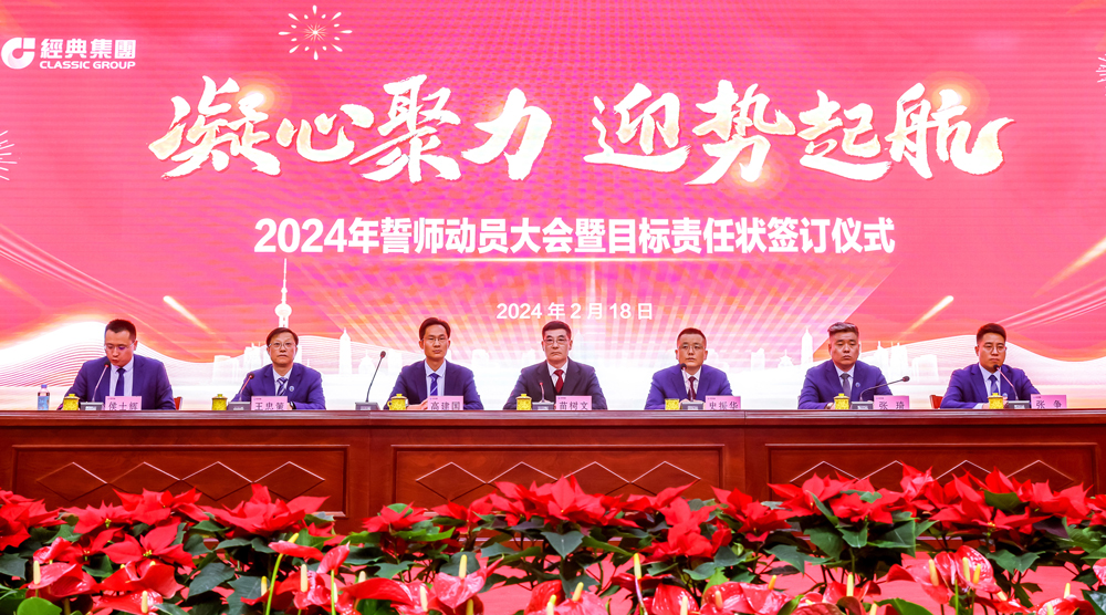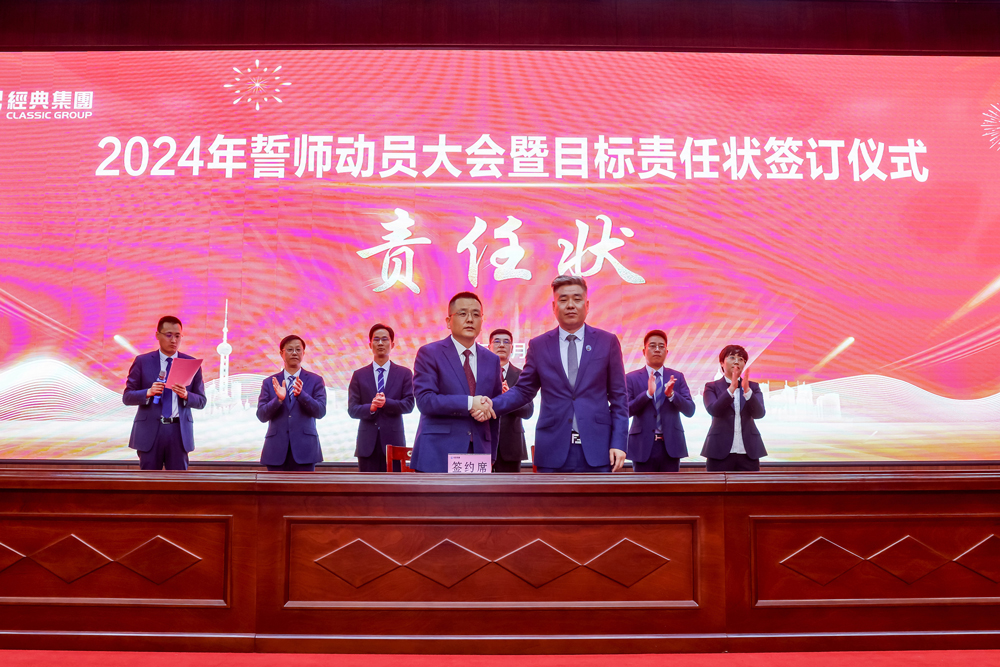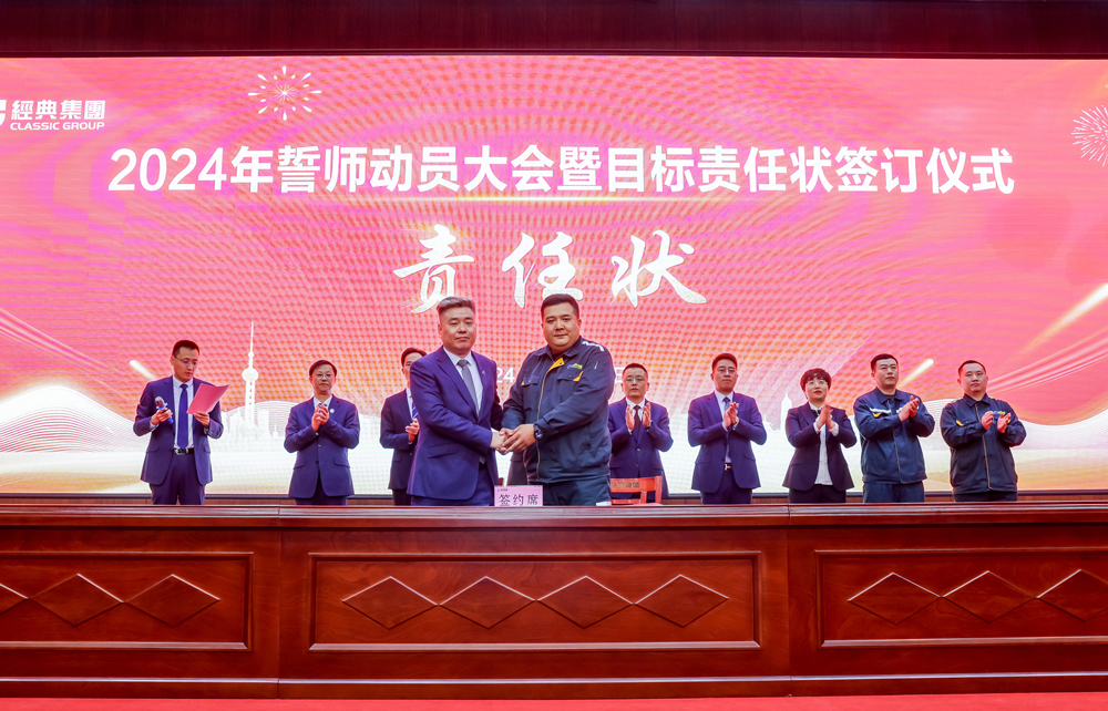 號(hào)角聲動(dòng),誓言鏗鏘。本次大會(huì)的成功召開,標(biāo)志著經(jīng)典集團(tuán)踏上了2024年新的征程,賦予了新的使命和挑戰(zhàn)。集團(tuán)上下要緊緊圍繞公司發(fā)展的總戰(zhàn)略要求,增強(qiáng)“舍我其誰”的使命感、“時(shí)不我待”的緊迫感,以更加昂揚(yáng)的姿態(tài)、更加團(tuán)結(jié)的力量乘勢(shì)而上、接續(xù)奮斗,競相發(fā)展、全面進(jìn)位,全力以赴推動(dòng)集團(tuán)高質(zhì)量發(fā)展加快突破,共同開創(chuàng)經(jīng)典集團(tuán)更加美好的未來!