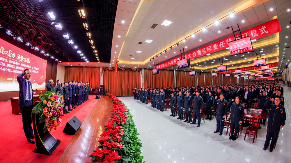 團(tuán)結(jié)凝聚力量,奮斗鑄就偉業(yè)。2月18日上午,經(jīng)典集團(tuán)2024年誓師動(dòng)員大會(huì)暨目標(biāo)責(zé)任狀簽訂儀式在職工會(huì)議中心成功召開,動(dòng)員集團(tuán)各部門錨定2024年各項(xiàng)目標(biāo)任務(wù),統(tǒng)一思想、凝心聚力,全力以赴抓好落實(shí),確保集團(tuán)高質(zhì)量發(fā)展再上新臺(tái)階。集團(tuán)董事會(huì)、集團(tuán)公司分管負(fù)責(zé)人、各單位負(fù)責(zé)人、工程項(xiàng)目經(jīng)理、各單位職工代表參加了會(huì)議。