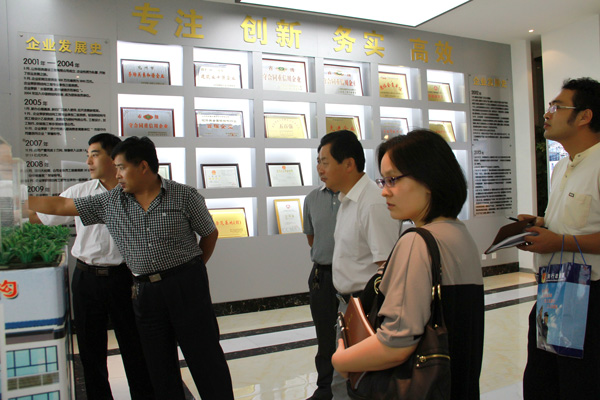 調研團一行不顧勞途奔波,到達公司后,首先參觀了集團公司營銷中心、項目管理中心、集團文化館,在文化館,集團董事長苗樹文簡單介紹了公司的發(fā)展歷程、產品結構、行業(yè)特性以及公司的現狀,隨后調研團領導深入生產一線,了解車間加工能力、生產進度,具體詢問了員工的工作環(huán)境及生活狀況。