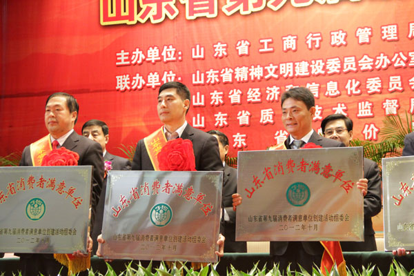 此次活動經過消費者滿意度調查、各市初評、材料審查、省考評組考評、征求主管部門意見、省評審委員會審定、社會公示等流程,由省消協(xié)、省文明辦、省工商局、省質監(jiān)局、省衛(wèi)生廳、省物價局、省總工會等13個部門共同認可肯定。該項榮譽的獲得標志著我公司的商品質量及服務水平不僅得到了濟寧地區(qū)廣大消費者的高度認可,在省、乃至全國也具有了一定的知名度。山東省副省長張建國同志也指出,消費者滿意單位是塊“金字招牌”,是政府、社會和廣大消費者對誠實守信、依法經營者的褒獎與認可。
