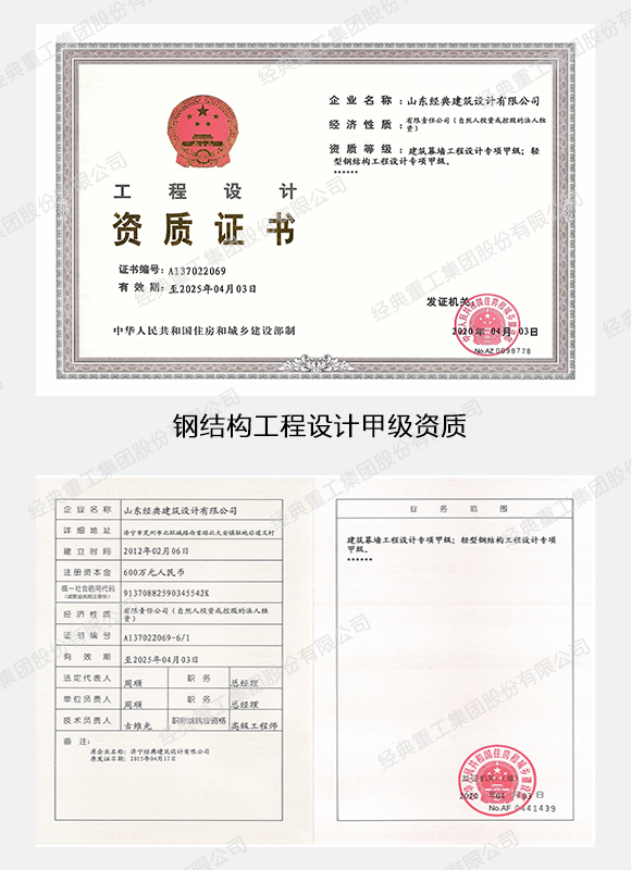 • 鋼結(jié)構(gòu)工程設(shè)計(jì)甲級資質(zhì)