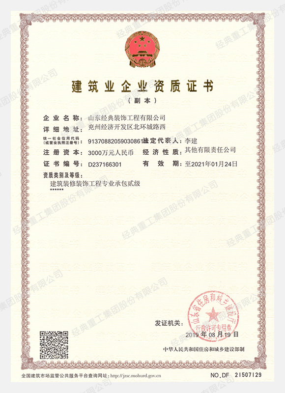 • 建筑裝修裝飾工程專業(yè)承包貳級