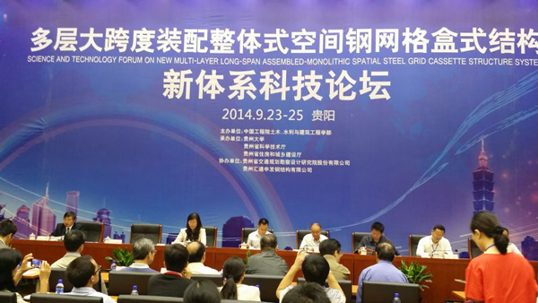 9月24日至25日,由中國(guó)工程院土木、水利與建筑工程學(xué)部主辦,貴州大學(xué)、貴州省科技廳、貴州省住建廳等承辦的“多層大跨度裝配整體式空間鋼網(wǎng)格盒式結(jié)構(gòu)新體系科技論壇”在貴陽(yáng)開(kāi)幕,論壇邀請(qǐng)中國(guó)工程院周豐峻院士、杜彥良院士、肖緒文院士、郭仁忠院士以及中國(guó)工程院土木、水利與建筑工程學(xué)部學(xué)術(shù)委員和來(lái)自國(guó)內(nèi)各知名高校、科研院所、設(shè)計(jì)院、鋼結(jié)構(gòu)行業(yè)知名企業(yè)二百余人參加,經(jīng)過(guò)現(xiàn)場(chǎng)考察、主題報(bào)告、學(xué)術(shù)交流研討,形成對(duì)中國(guó)工程院士馬克儉“盒式結(jié)構(gòu)新體系”的論證意見(jiàn)。意見(jiàn)認(rèn)為:該體系以“產(chǎn)、學(xué)、研”結(jié)合方式進(jìn)行科學(xué)技術(shù)成果的研發(fā)與轉(zhuǎn)化,是理論與實(shí)踐相結(jié)合的良好形式,是落實(shí)“實(shí)施創(chuàng)新驅(qū)動(dòng)發(fā)展戰(zhàn)略”的有效舉措。該項(xiàng)目取得了良好的社會(huì)經(jīng)濟(jì)環(huán)境效益,有良好的推廣應(yīng)用前景,經(jīng)典集團(tuán)董事長(zhǎng)苗樹(shù)文應(yīng)邀參加“盒式結(jié)構(gòu)新體系”研討,并與馬克儉、肖緒文等院士互動(dòng)學(xué)習(xí)交流,并觀摩了中國(guó)南車集團(tuán)貴陽(yáng)新產(chǎn)業(yè)基地大自然工業(yè)園芯料生產(chǎn)廠房、貴州省博物館新館等“盒式結(jié)構(gòu)新體系”應(yīng)用示范單位。