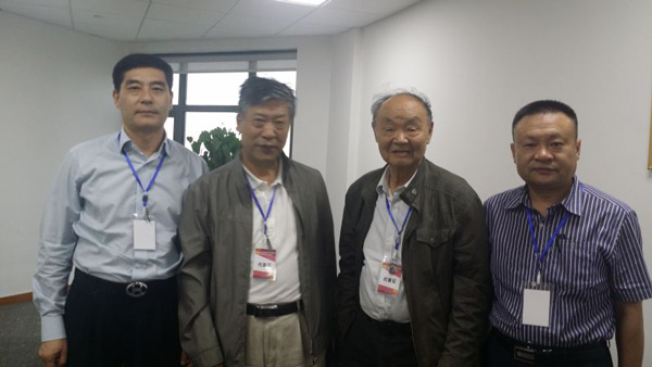 中國(guó)工程院馬克儉院士(右二),肖緒文院士(左二),山東建筑大學(xué)周學(xué)軍院長(zhǎng)(右一)與董事長(zhǎng)苗樹(shù)文(左一)合影