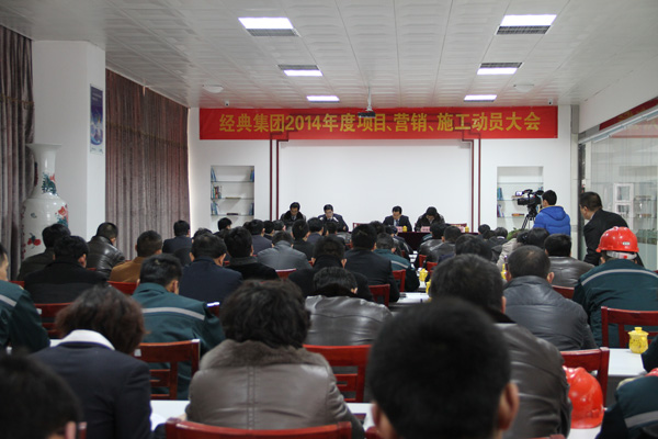 2月7日,為推進2014年度戰(zhàn)略目標順利實施,經(jīng)典集團隆重召開項目、營銷、施工動員大會。集團公司高層領導苗樹文、杜福生、鄭建康、司紅玲、鄭利昌、高建國出席了此次會議,集團公司有關部門負責人、項目經(jīng)理、營銷人員、施工隊長、生產(chǎn)車間負責人等80余人參加了此次大會。