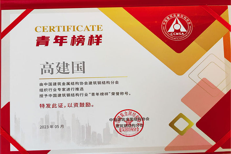 高建國同志榮獲中國建筑鋼結構行業(yè)青年榜樣稱號