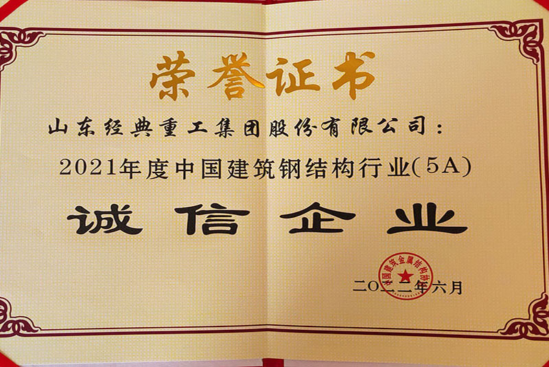 公司榮獲中國建筑鋼結構行業(yè)5A誠信企業(yè)稱號
