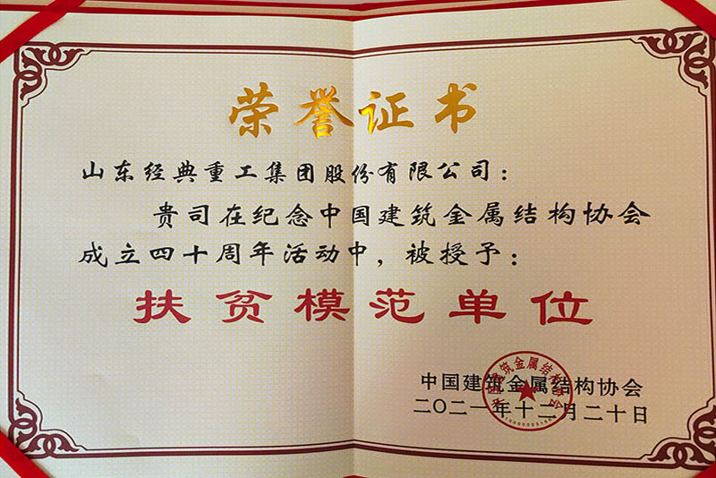 公司榮獲中國建筑金屬結構協(xié)會扶貧模范單位稱號
