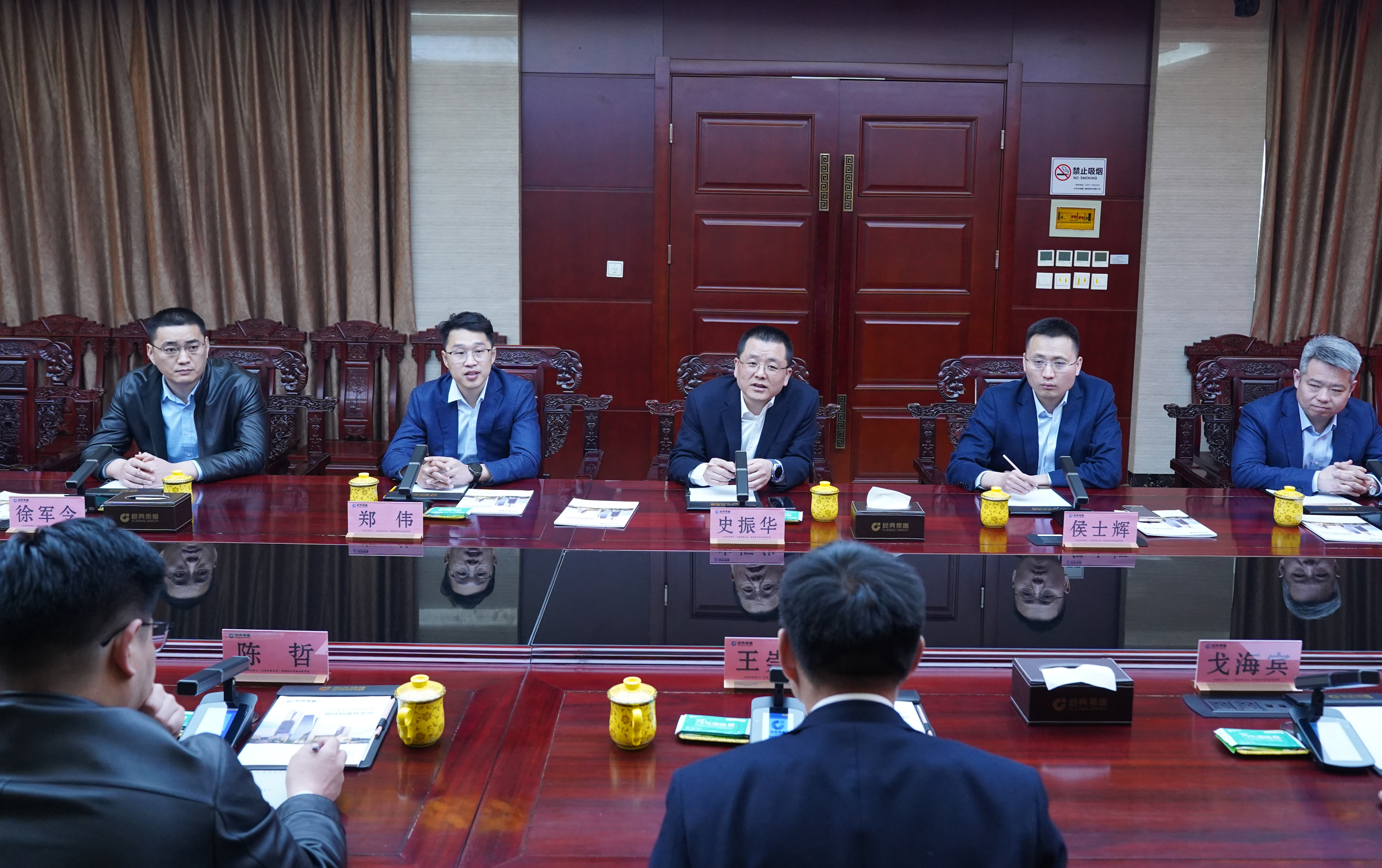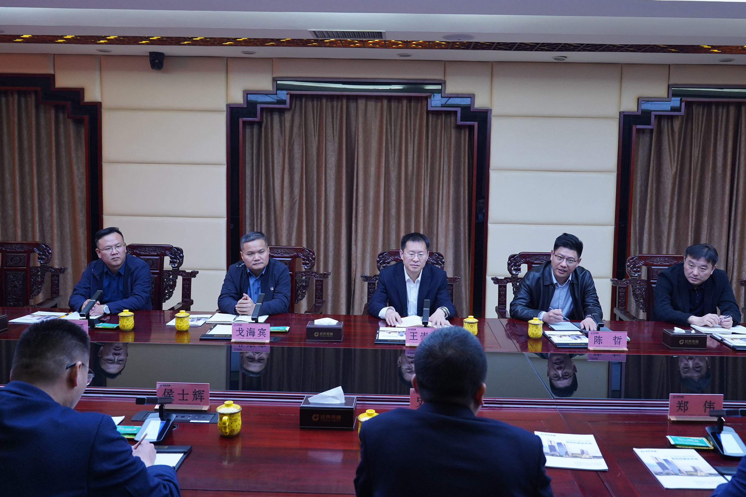 3月22日上午,濟(jì)寧能源發(fā)展集團(tuán)有限公司黨委副書(shū)記、總經(jīng)理王崇景,山東融匯物產(chǎn)集團(tuán)黨委書(shū)記、董事長(zhǎng)陳哲,金橋煤礦黨委書(shū)記、礦長(zhǎng)戈海賓,山東融匯物產(chǎn)集團(tuán)副總經(jīng)理、山東京杭智慧新鋼投資運(yùn)營(yíng)公司董事長(zhǎng)陳瑞亮等一行到經(jīng)典集團(tuán)考察洽談合作。